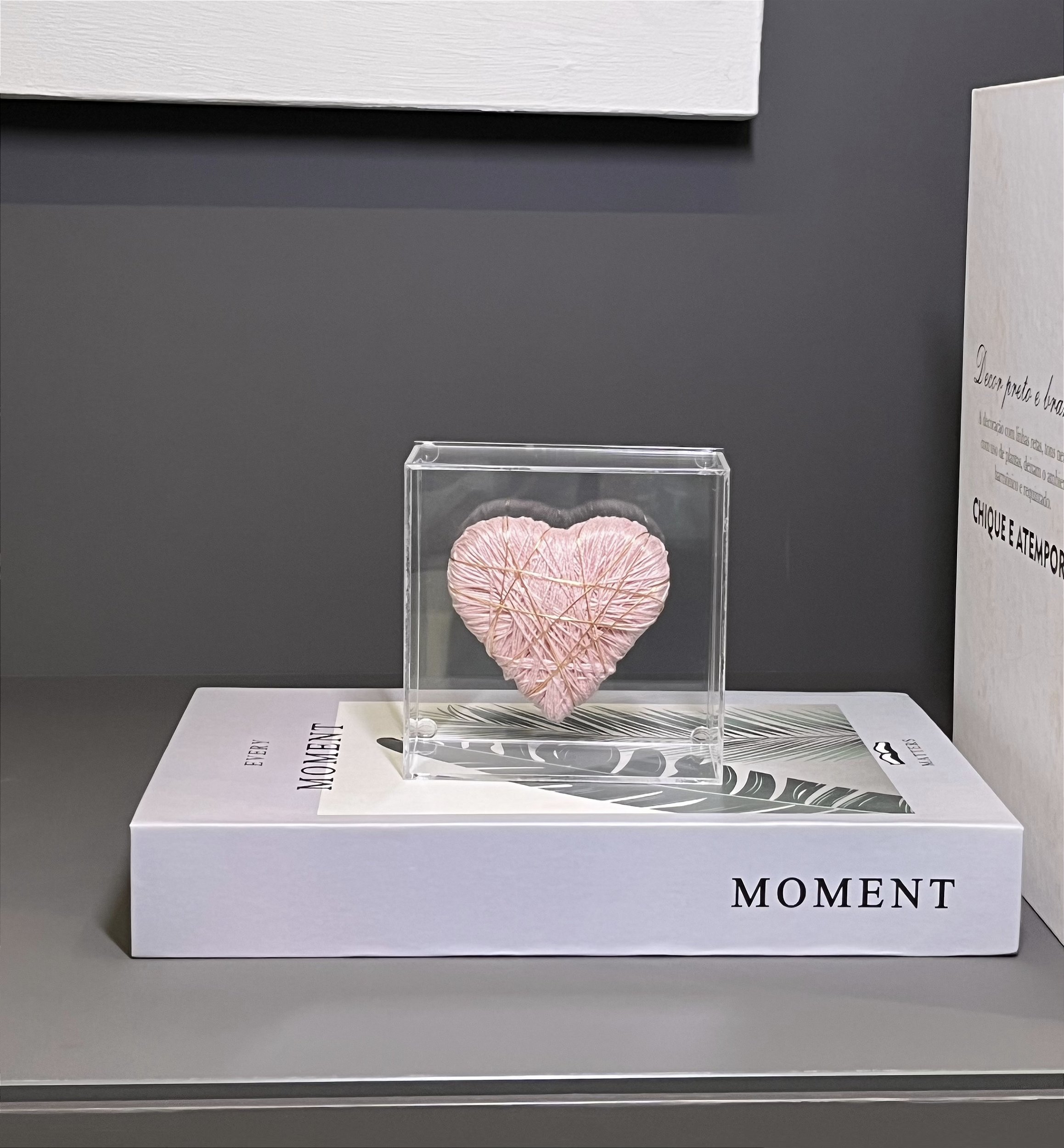 Caixa Acrílico Coração Fios de Cobre Rosa Claro P