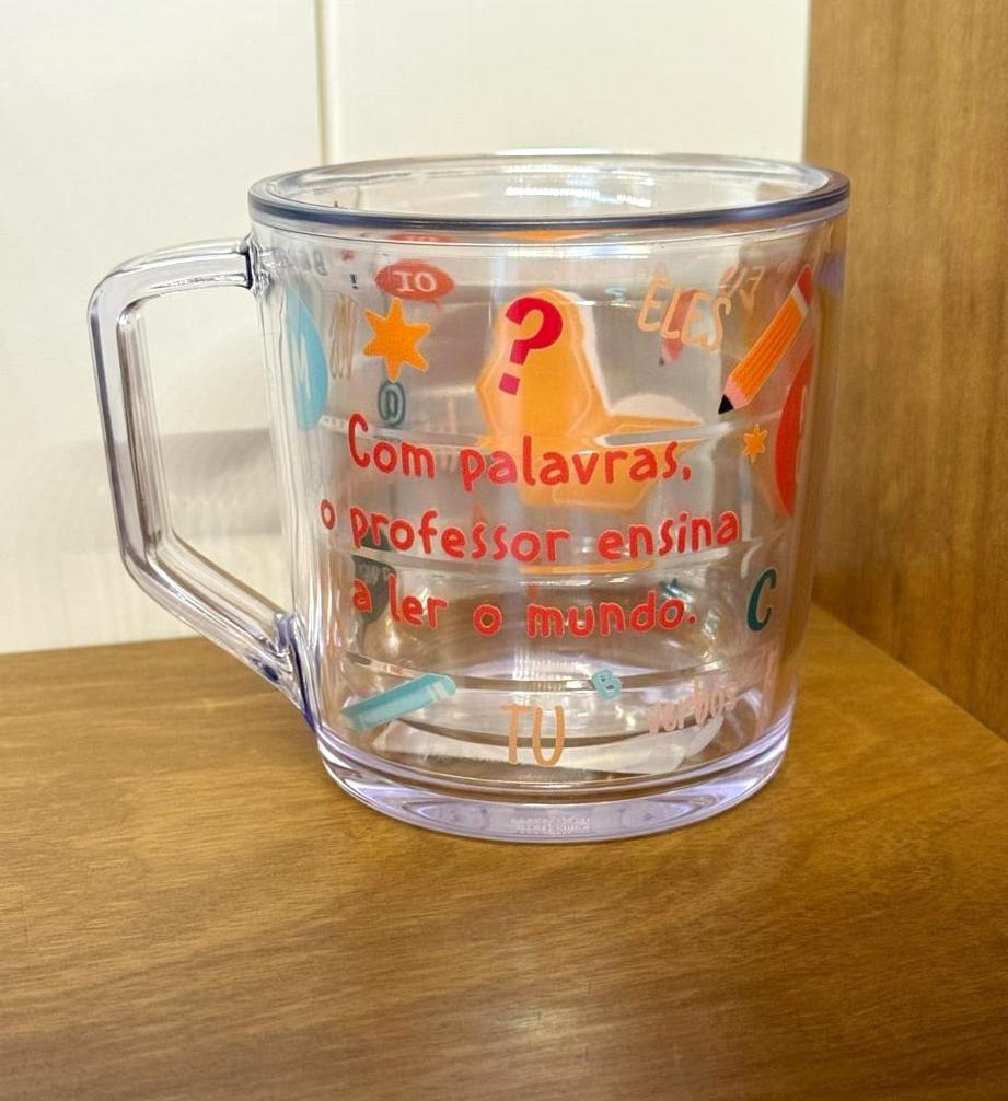 Caneca Dia dos Professores - Professor de Português - "Com Palavras o Professor Ensina a Ler o Mundo".