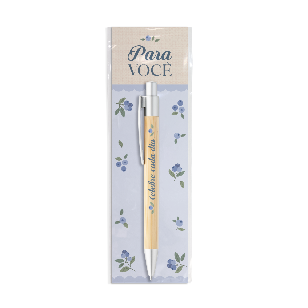 Card com mensagem + Caneta esferográfica em bambu com clipe metálico | cor da escrita: azul
