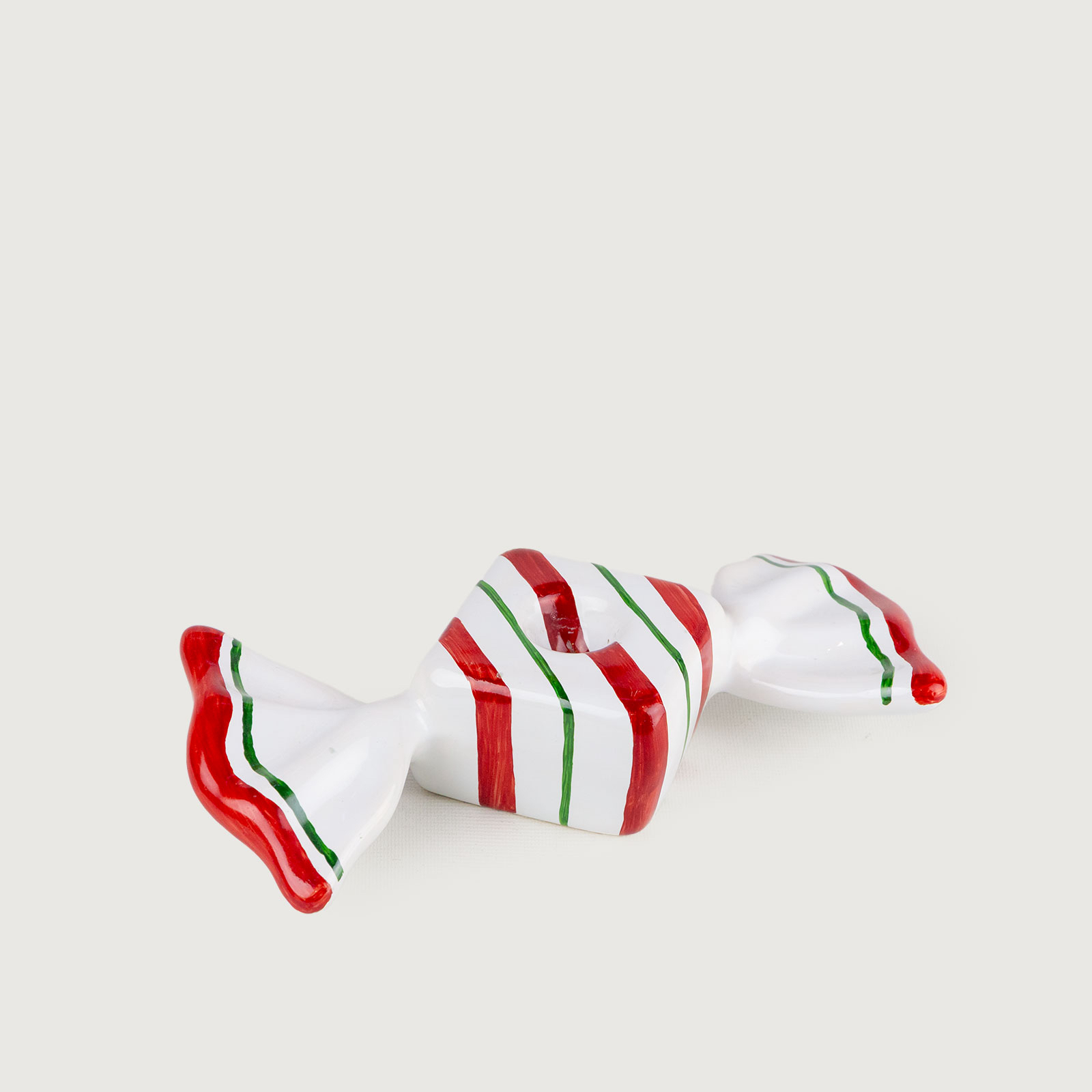 Castiçal Bala Candy Quadrada é uma peça encantadora que traz o espírito alegre e colorido do Natal para a sua mesa posta. Feito em cerâmica, com formato de bala redonda e pintura nas cores vermelho, branco e verde, ele adiciona um toque divertido e sofisticado à decoração.