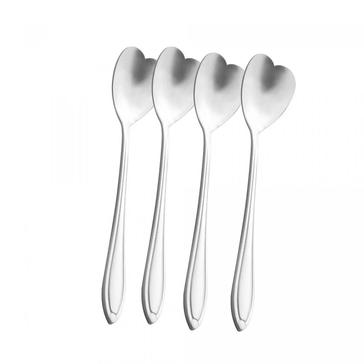 Conjunto 4 Colheres de Chá de Aço Inox Heart Prata - Wolff