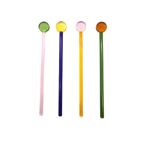 O Conjunto de Mexedores de Drinks em Borossilicato Coloridos (Modelo Bolinha) é o toque de irreverência e charme que faltava no seu bar. Produzidos em vidro borossilicato de alta resistência, estes mexedores apresentam uma haste fina finalizada com uma delicada esfera colorida no topo. Esse design "pop" e lúdico remete aos clássicos mexedores de coquetéis das décadas de 50 e 60, mas com a tecnologia e a pureza do vidro moderno.