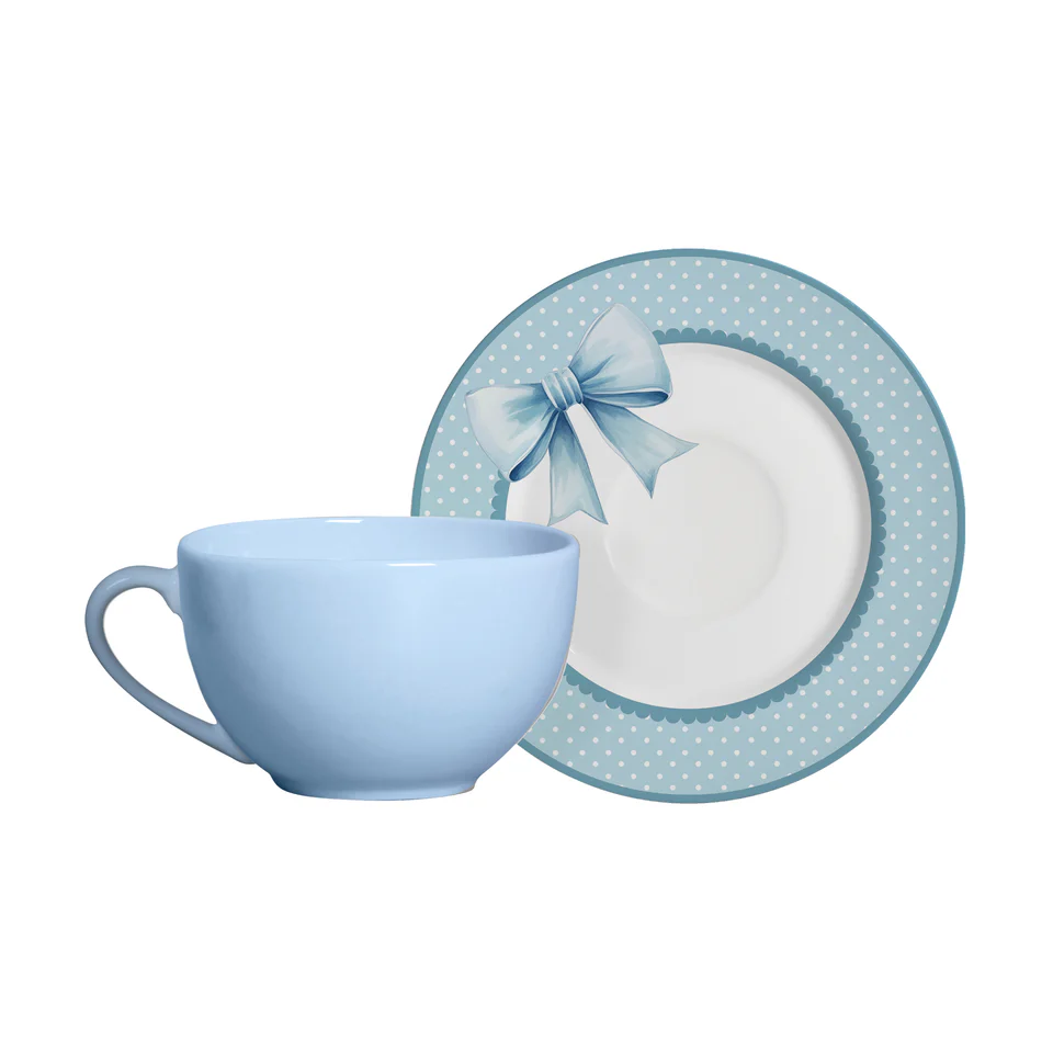 O Conjunto com 6 Xícaras de Chá com Pires Laços de Páscoa Azul traz um toque delicado e temático para a mesa, com estampa de laços inspirada na Páscoa e tonalidade verde suave. Ideal para servir chá com charme em encontros especiais, composições de mesa posta ou momentos de celebração, o conjunto combina perfeitamente com decorações sazonais e propostas mais acolhedoras, valorizando a experiência de servir com elegância e harmonia.