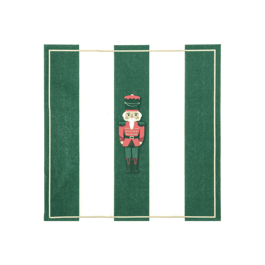 Aposte na delicadeza e no charme clássico do Natal com o Guardanapo de Papel Soldadinho de Chumbo! Com estampa listrada em Verde e branco e o icônico soldadinho ao centro, ele é a escolha perfeita para composições natalinas que encantam adultos e crianças.
