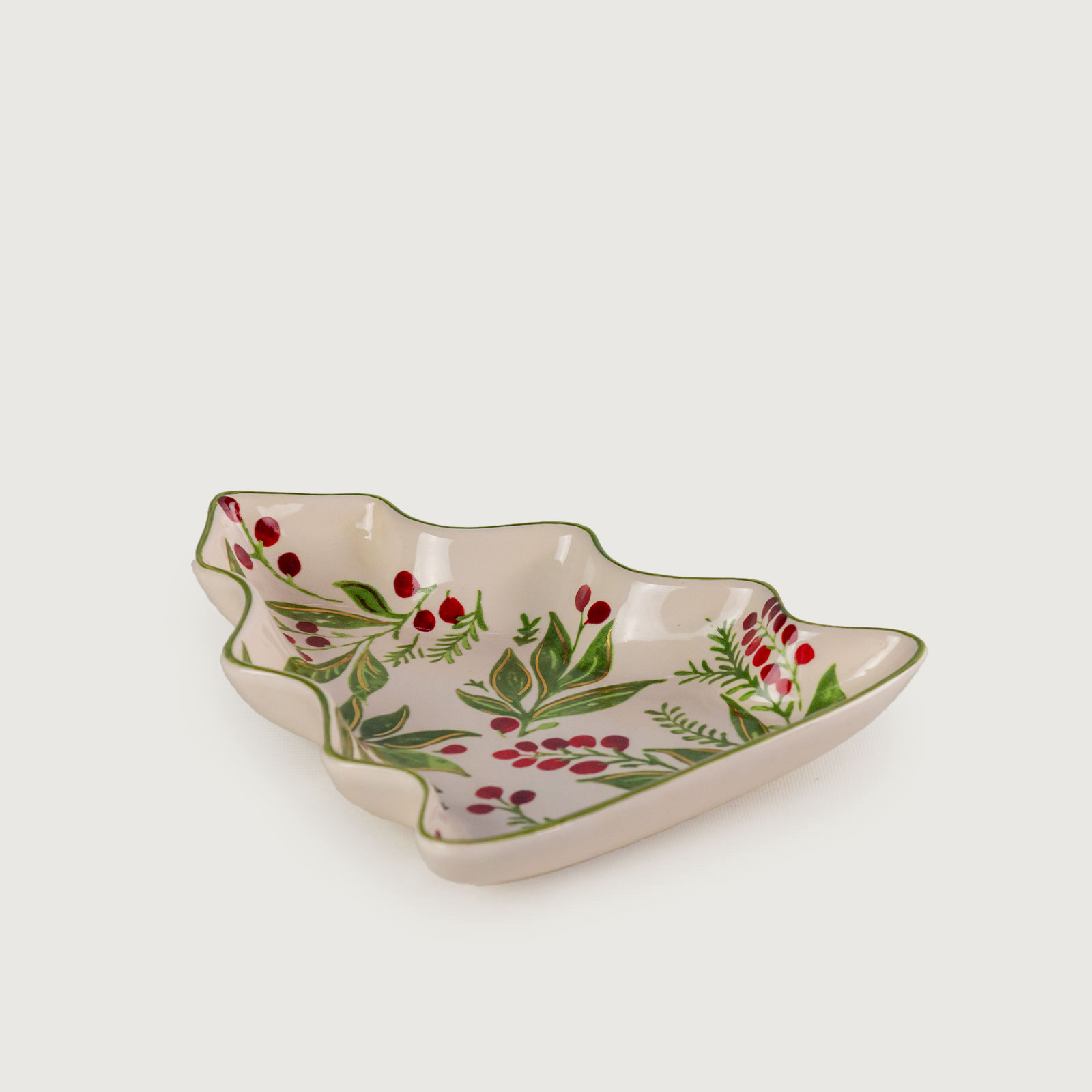 Charmosa e temática, esta petisqueira em formato de árvore de Natal é decorada com ramos verdes e frutos vermelhos, remetendo ao clássico espírito natalino. Uma peça funcional e, ao mesmo tempo, decorativa, que transforma qualquer reunião em um momento ainda mais especial. Conheça os itens e complete sua coleção.