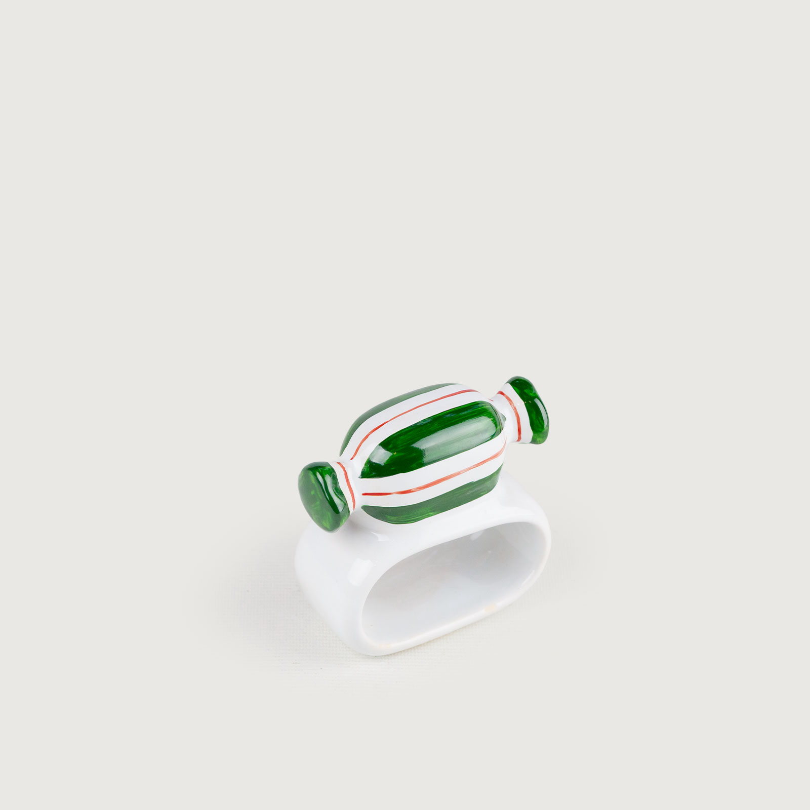 O Porta-Guardanapo Bala Verde é o toque final que transforma a sua mesa posta em um verdadeiro cenário natalino. Feito em cerâmica, possui um delicado detalhe de bala verde no topo, inspirado na alegria e nas cores da Coleção Candy.