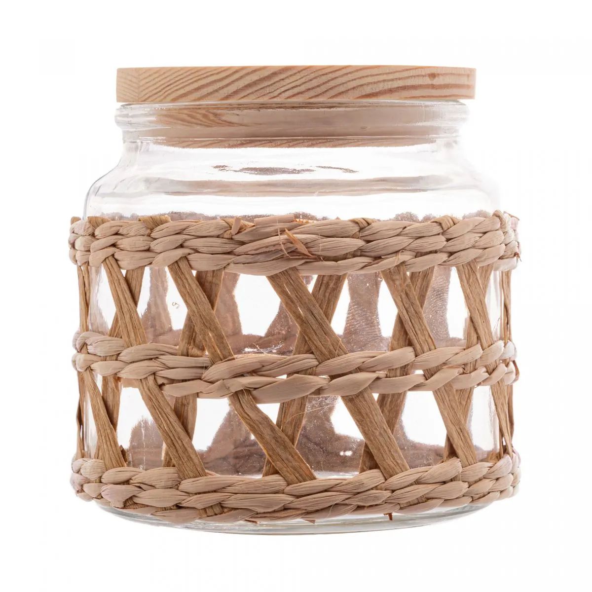 Porta Mantimentos de Vidro com Sisal e Tampa de Madeira 520ml - Wolff