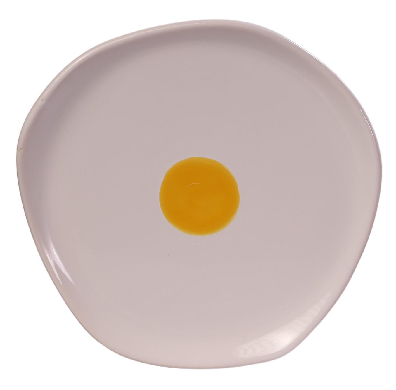 1 Prato Sobremesa Redondo Orgânico Ovo Breakfast em Cerâmica 2,5x23cm