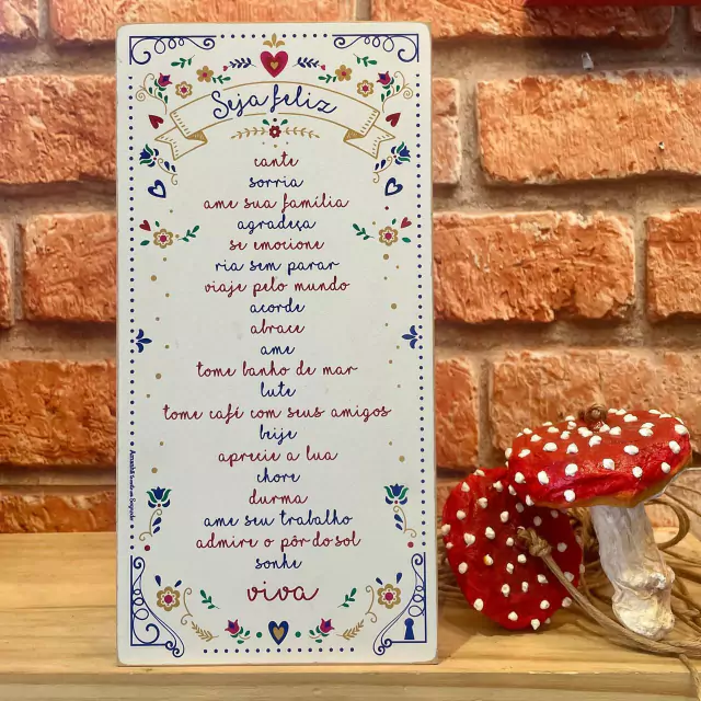 Quadro Box Seja Feliz Branco - 15cm x 30cm