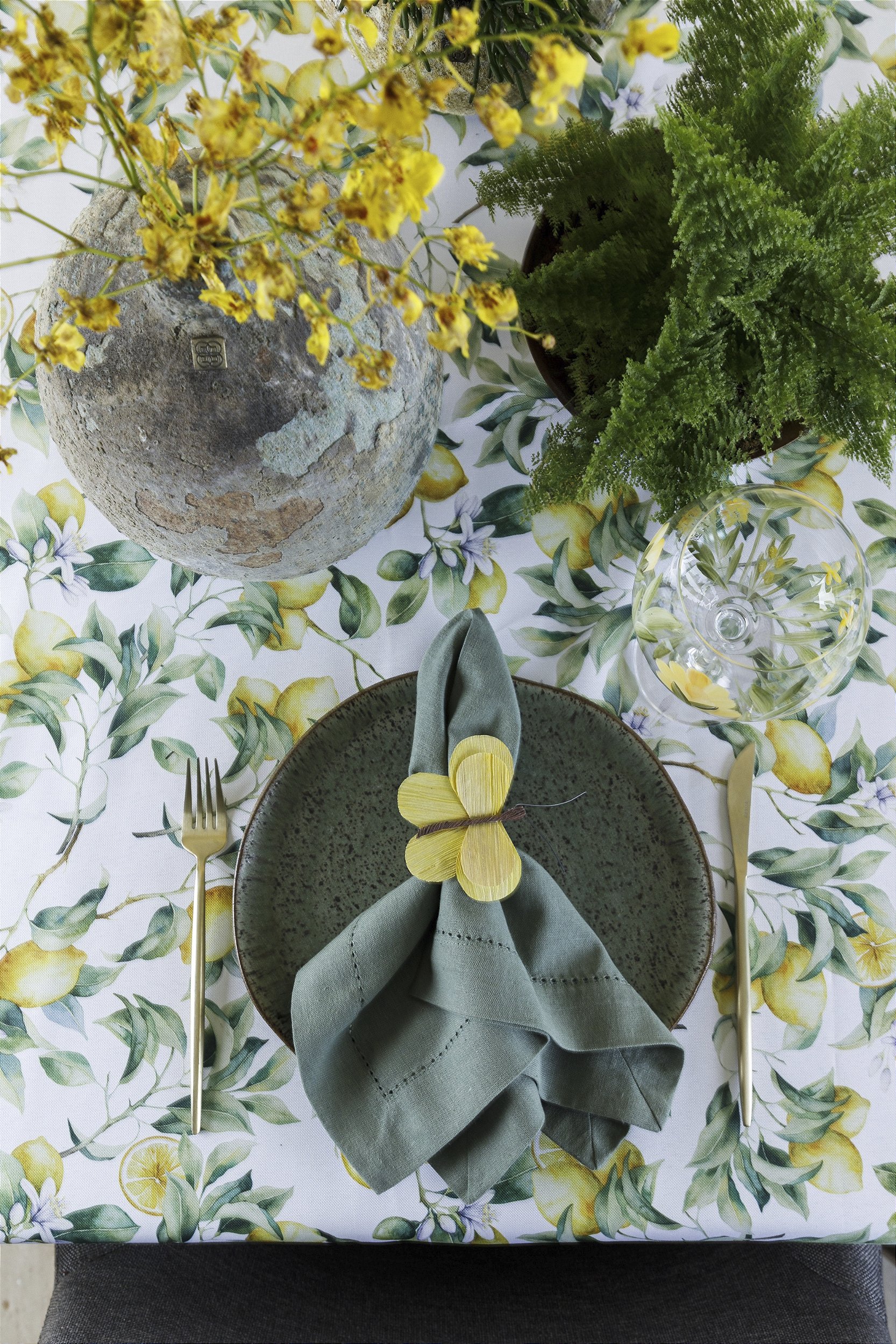 Toalha de Mesa Retangular Impermeável Auguri Casa Acqua Limone 160cm x 320cm: Transforme Seus Momentos, Celebre com Estilo.