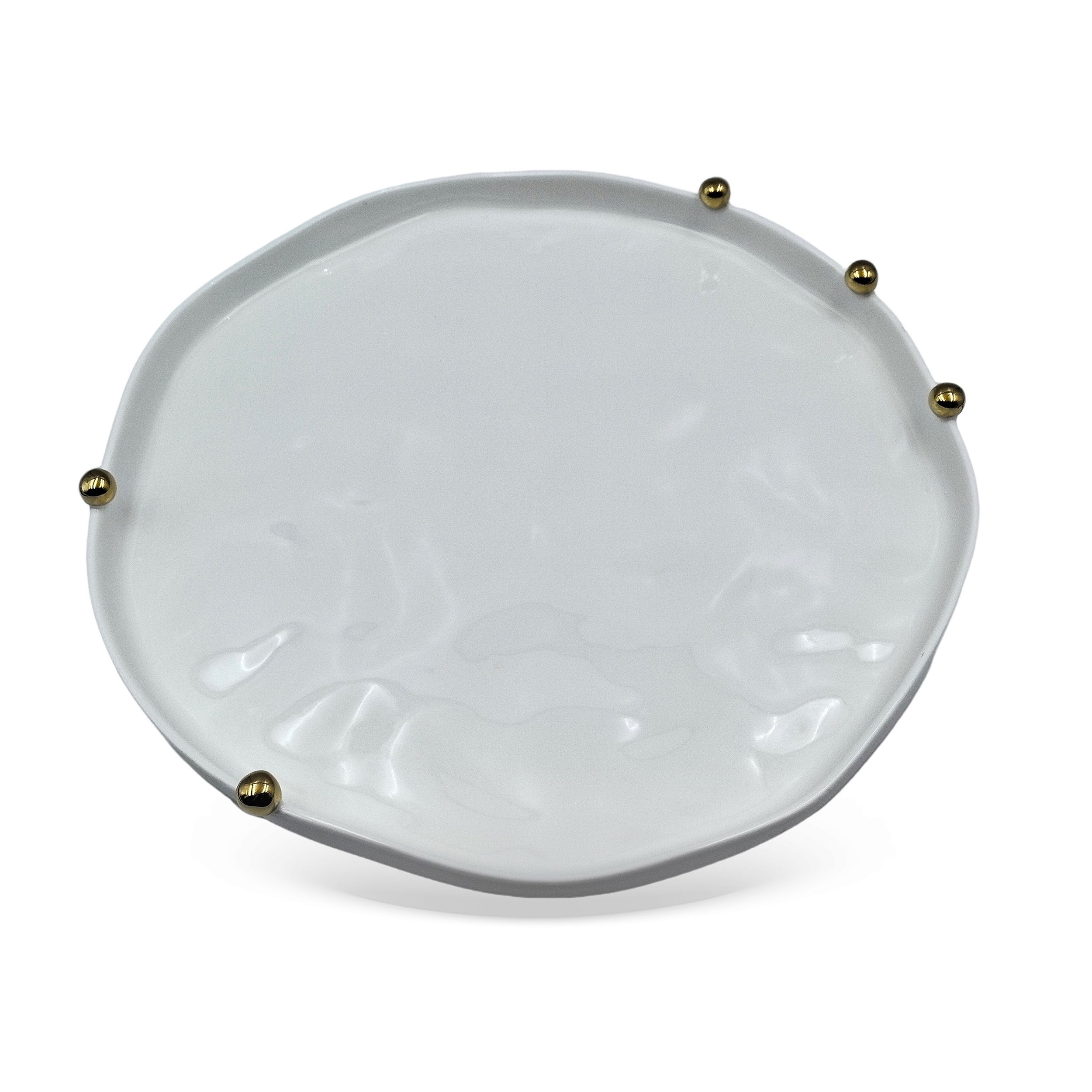 Travessa Decorativa em Porcelana Branca com Esferas Douradas