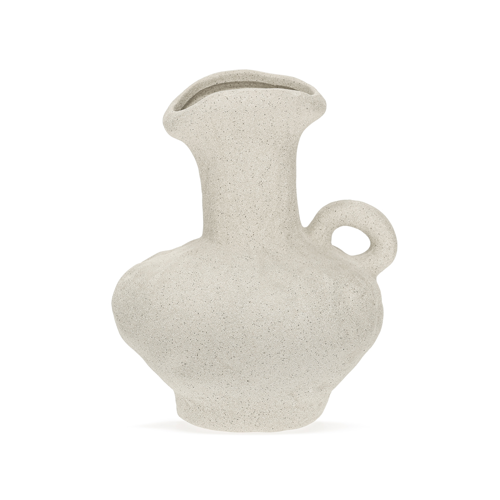 DescriçãoVaso de cerâmica com alça cinza 22x18 cm Observação: As cores dos produtos podem sofrer variações em função das características do monitor e do ambiente durante sua visualização. Matéria prima: Cerâmica